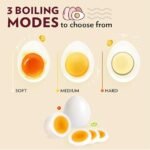 - CHOOSE FROM 3 BOILING MODES – Prepare your eggs just the way you like them. Soft and runny, hard boiled, medium consistency – the egg boiler can do it all!