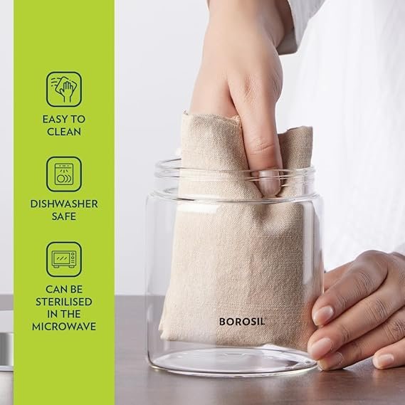 - MICROWAVE & FREEZER SAFE – Our borosilicate glass storage jar can be used for reheating. It can also be used to freeze dry masalas and flour mixes in bulk.