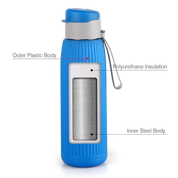 - Innovative Design: Crafted to perfection, this bottle combines an inner steel layer with an outer plastic layer and features polyurethane insulation for storing cold beverages. It’s 100% BPA-free and non-toxic, ensuring your drinks remain untainted by oxidation or metallic taste.