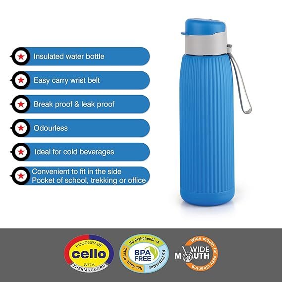 Be the first to review “CELLO Puro Steel-X Volvo 600 | Water Bottle with Inner Steel and Outer Plastic | Rust Proof and Leak Proof | Wide Mouth for Easy Cleaning | 630ml, Blue” Cancel reply