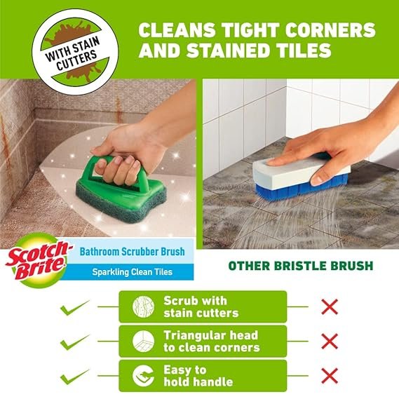 Be the first to review “Scotch-Brite Bathroom Brush with abrasive scrubber for superior tile cleaning (Green,Pack of 1)” Cancel reply