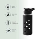 Treo By Milton Proteger 500 Borosilicate Glass Bottle With Silicon Protector, 535 ml, Black (Pack of 1)