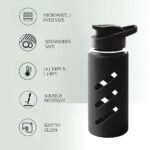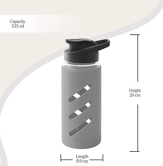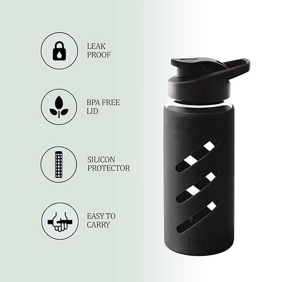 - The sporty, colourful silicone sleeve adds a very cool, smart look to the glass water bottle which you can proudly carry to places in style.
